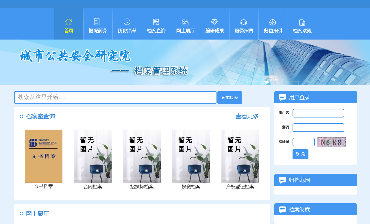 深圳市城市公共安全技術(shù)研究院檔案系統(tǒng)目前主要用于院本部檔案管理使用,隨后計(jì)劃擴(kuò)展到子公司使用。