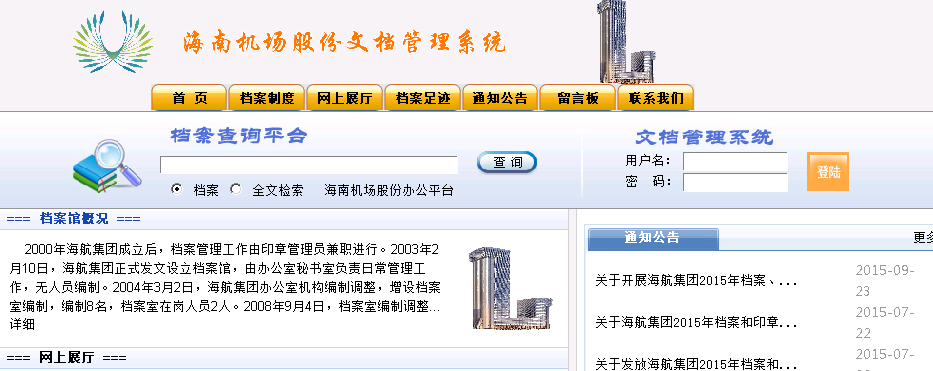 海航集團使用我公司V8版檔案系統,主要用于電子檔案的管理,包括文件管理,檔案管理,資料管理、全文檢索。經過一段時間試運行,海航檔案系統已能滿足客戶業務需求,成功驗收。
